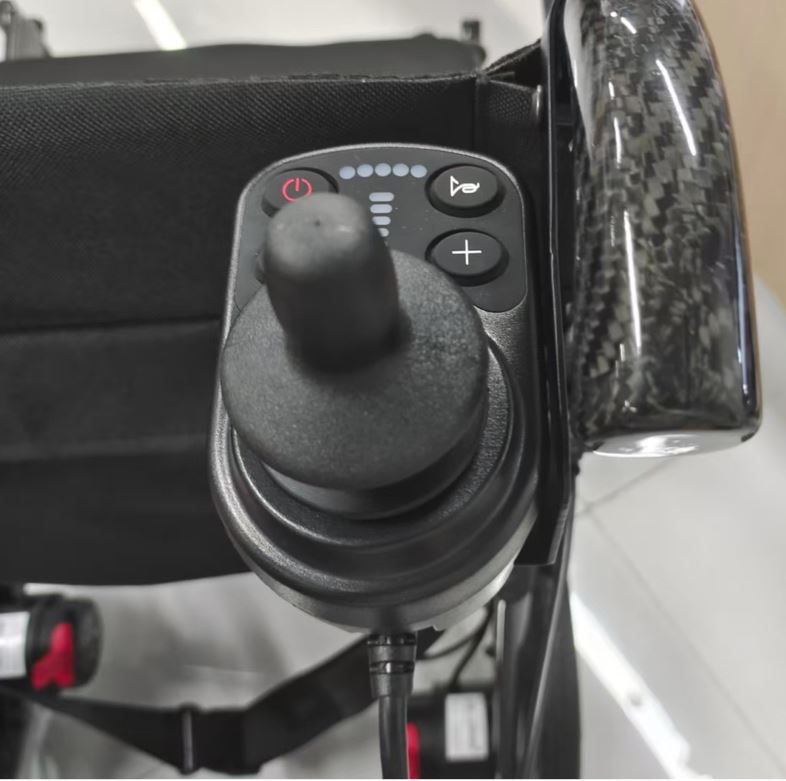 Attendant Bracket for Drive Aerocarbon Powerchair, to enable a carer to control the chair. Remove joystick from armrest mount and affix to bracket mounted to handle bar, see image.
