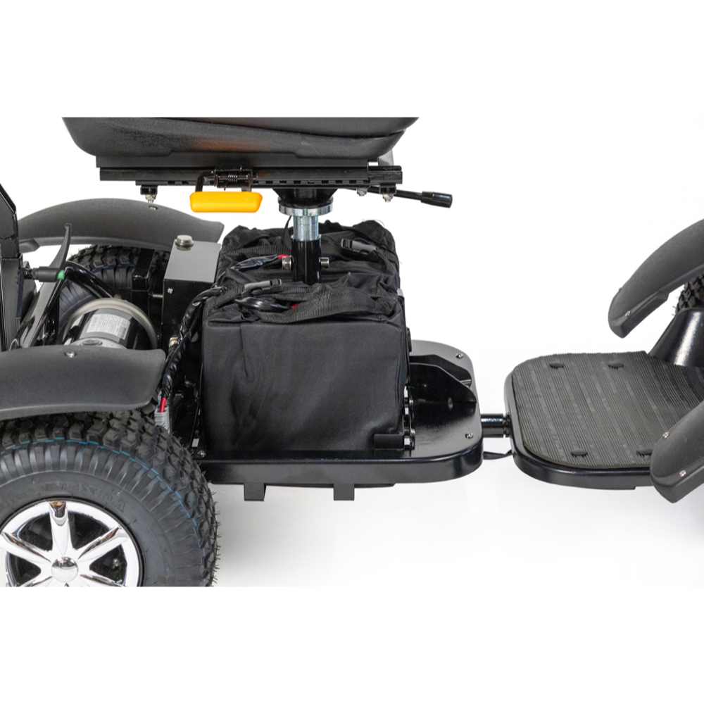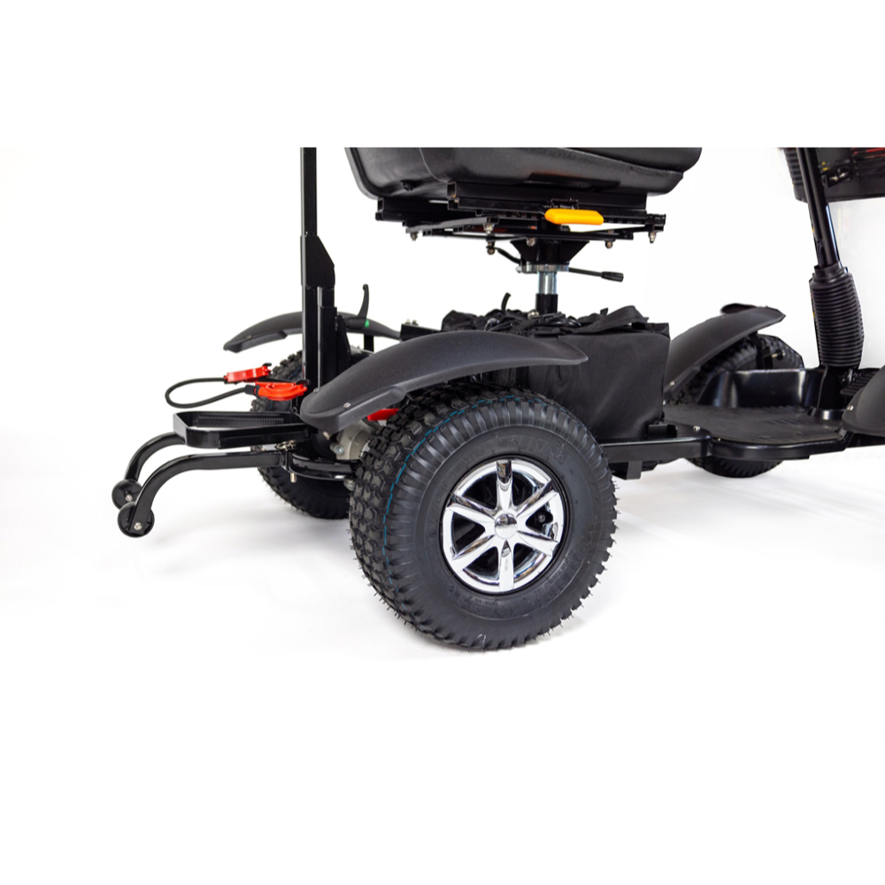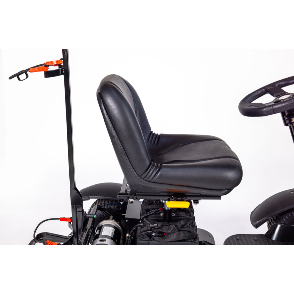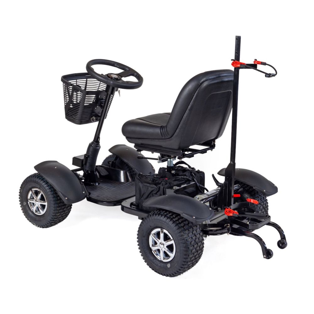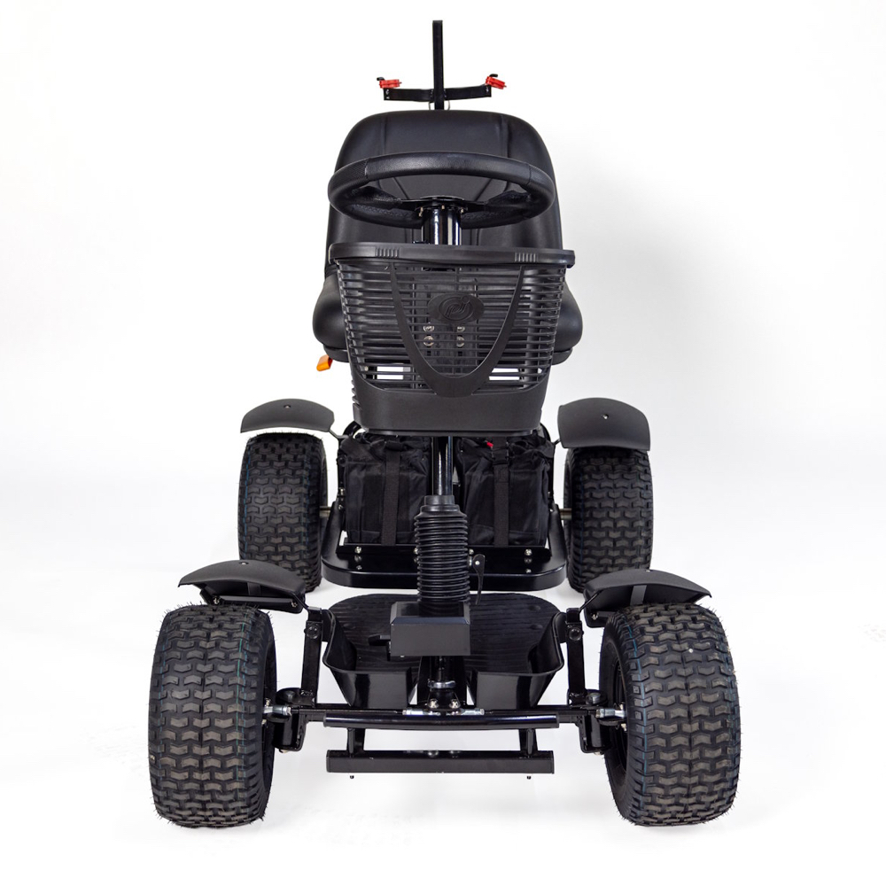 Built with chunky all-terrain wheels, strong suspension, and a powerful 1,000W motor, it handles uneven ground, rough paths, and steep hills with confidence. Forward and reverse controls make it simple to manoeuvre, while the supportive seat with excellent lumbar support helps keep you comfortable throughout your round.