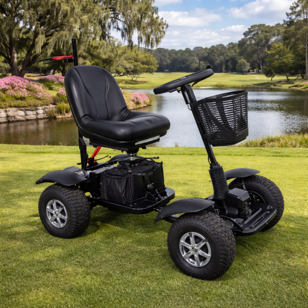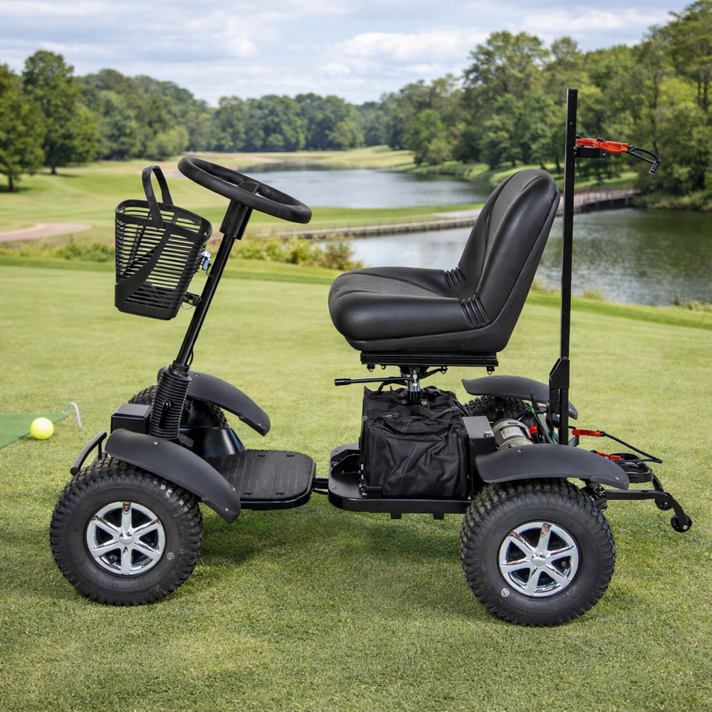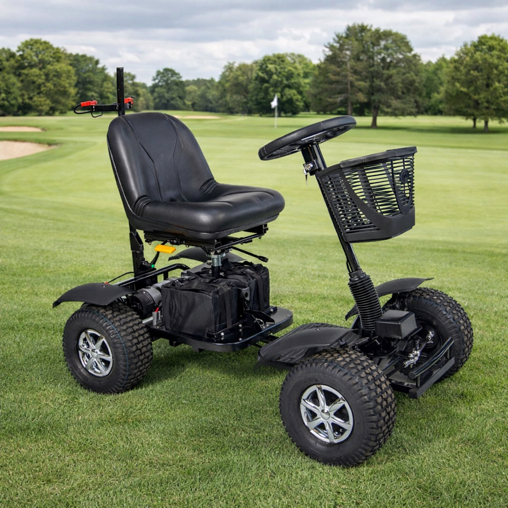 - Class 3 mobility scooter designed for golf course use